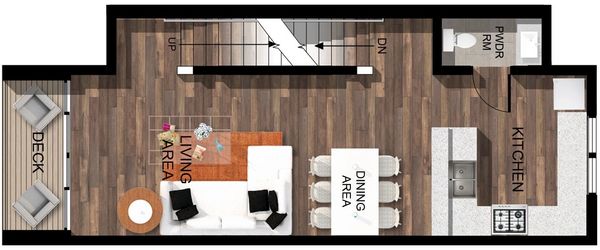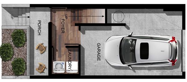 Foggy Bottom Flats offers a thoughtfully designed two-bedroom, two and a half bath floor plan, which spans three floors. Each 1,100 sq. ft. unit will have an attached garage, open concept main floor and ample outdoor living space with a porch and balcony. We know pets are family, and that's why pets are welcome at Foggy Bottom Flats.
